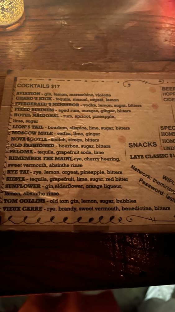 “ I had the pleasure of visiting The Mirror, a speakeasy in downtown DC, while in town for a conference with my colleague. We decided to drop by last minute right before closing, and it turned out to be an unforgettable experience. The ambiance was incredible, offering a perfect blend of elegance and mystery. The highlight of our visit was the bartender, who was truly amazing. Despite the late hour, they welcomed us with exceptional service and crafted some of the best cocktails weve ever had. The Mirror is a hidden gem that I highly recommend to anyone looking for a unique and delightful night out. If youre in DC, make sure to check it out you wont be disappointed! ”
